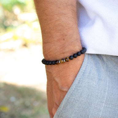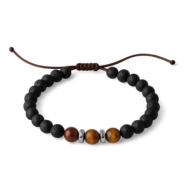Nacida del fuego y la tierra, la pulsera Fuerza del Volcán combina la intensidad de la piedra volcánica con la mirada penetrante del ojo de tigre.E...